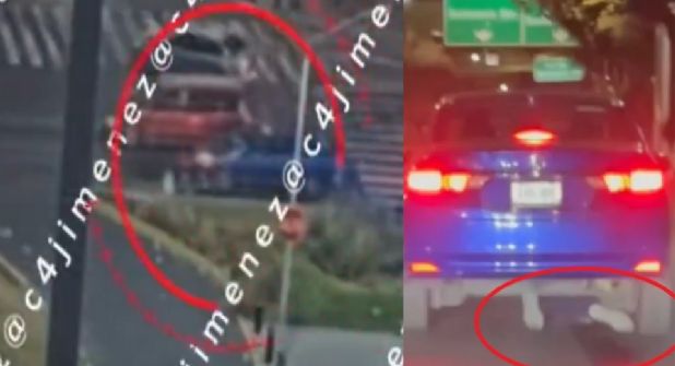 Las imágenes difundidas en redes sociales muestran el instante en que el repartidor circulaba sobre Periférico Oriente, a la altura de Eje 6 Sur, en Iztapalapa, cuando un Honda City azul invade su trayectoria y lo embiste de lleno, proyectándolo hacia el frente, desde ese punto comienza el arrastre.