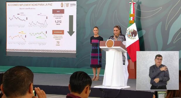 En materia de seguridad, la gobernadora destacó que 2025 fue el año con menor número de homicidios dolosos en Guerrero desde 2009, mientras que diciembre de 2025 registró el nivel más bajo en más de una década.