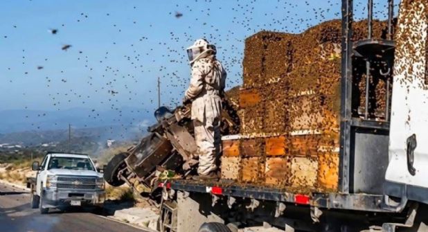 Luego de varias horas de trabajo, las autoridades lograron retirar el camión accidentado y controlar la situación con las colmenas.