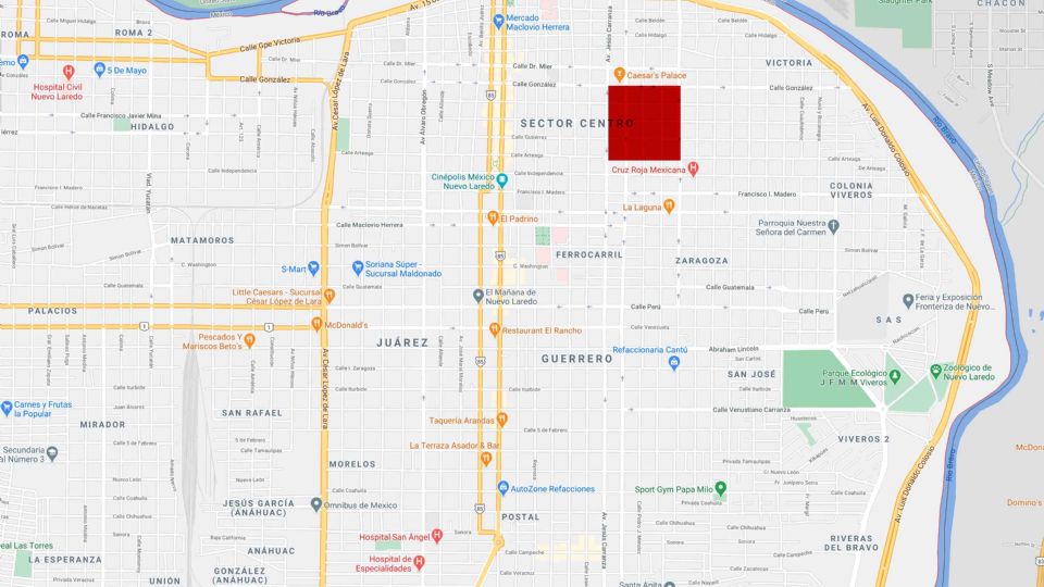 La primer zona de tolerancia de Nuevo Laredo abarcaba, al norte por la calle González, al sur por la calle Arteaga, al oriente la San Antonio hoy 20 de noviembre y al poniente la Jesús Carranza