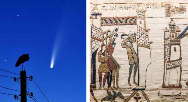 Para los antiguos, su llegada era augurio de calamidades. Por supuesto, aquellas terribles profecías siempre se cumplían. Resulta comprensible. En el lapso en que un cometa solía ser visible desde casi todo el globo, días o semanas, siempre tenía lugar una desgracia atribuible. La más famosa se remonta a 1066, año en que se predijo la caída del rey sajón Harold II ante la invasión normanda de Guillermo el Conquistador.