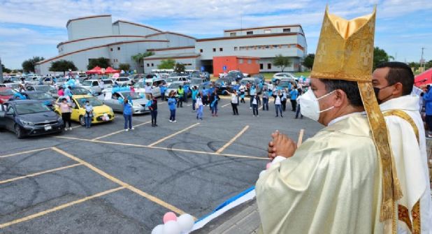 Cuando el reloj marcó las 11:00 de la mañana los creyentes fueron partícipes de una celebración eucarística que escucharon desde sus automóviles, en donde unieron sus oraciones a favor del derecho a la vida.