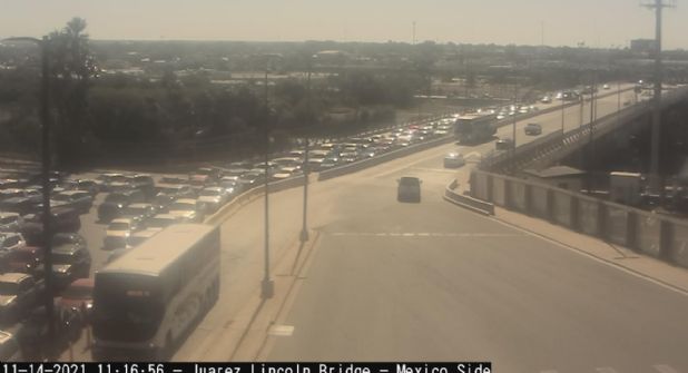 De acuerdo con las cámaras, a esta hora, el Juárez Lincoln, para cruzar hacia Laredo, Texas se ve casi lleno en su plancha, más no en los accesos del lado mexicano. Se espera que incremente con el paso de las horas. El cruce hacia Nuevo Laredo es muy bajo, no hay importante flujo.