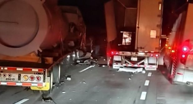 Accidente en la pista Monterrey Laredo en la segunda cuesta el choque fue de tres trailers