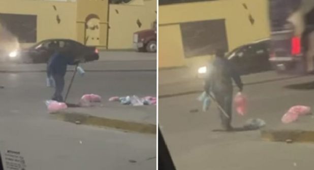 "Este señor en la noche del 23 de diciembre ofreciendo algodones, y después que me ofreció a mi y otras personas y le dijimos que no, caminó y azotó el palo contra la calle, brincando arriba de ellos desesperadamente" indicó la usuaria en la publicación.