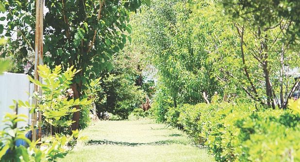 Desde hace ocho años, luego de quedar viuda, la maestra Nelia se refugió en este jardín, que junto con sus vecinos han convertido en un área de esparcimiento; por las tardes, cuando cae el sol, se reúnen para compartir o merendar en un área que pareciera incluso un pequeño salón de clases al aire libre.