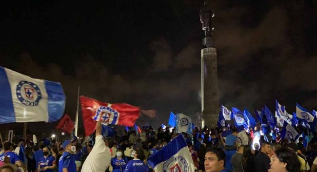 El barullo al acercarse al punto de festejo se hacía cada vez más ensordecedor y al llegar al punto de festejo, bocinas y cohetones se combinaban con los gritos de alegría de los aficionados al Cruz Azul.