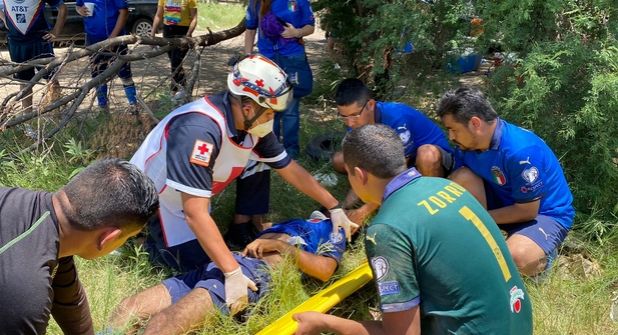 El accidente que por poco acaba en tragedia ocurrió por la tarde del Día del Padre, en unas canchas de futbol ubicadas sobre la avenida Reynosa, entre Fidel Velázquez y 15 de Septiembre.
