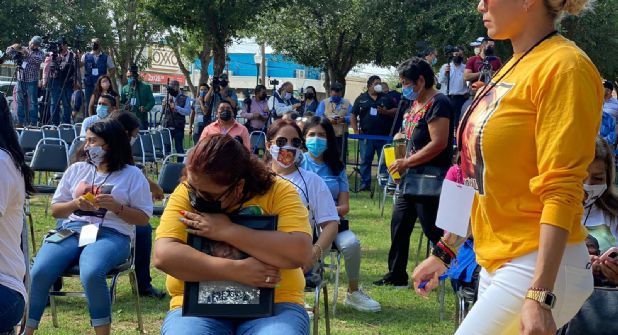Así como ella, también Erika Arredondo, quien durante el evento sollozaba abrazando una fotografía de su hijo, con fuerza como si se tratase de su cuerpo, el cuerpo de su hijo Julio César Viramontes, quien es uno de los desaparecidos y el cual exige que le regresen.