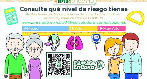 ¿Te gustaría saber qué nivel de riesgo tienes ante el Covid-19? Ahora puedes hacerlo con sólo ingresar a la página oficial del IMSS y darle Click a la imagen de color verde en donde viene todo lo relacionado a esta patología.