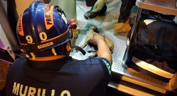 "El día de ayer durante un incendio de casa habitación, personal de la Dirección de Protección Civil y Bomberos rescatan un cachorrito del interior, al revisarlo no presentaba signos y personal prehospitalario proceden a darle reanimación y a suministrarle oxígeno, logrando sacar del paro al pequeño perrito", compartieron los apagafuegos en su cuenta oficial.