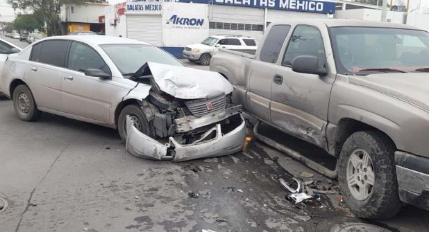 Según Jessica, de 27 años, circulaba en su auto Saturn por avenida César López de Lara de norte a sur cuando una camioneta procedía del sur y en la Iturbide gira a la izquierda y se estrella contra el costado de la camioneta.