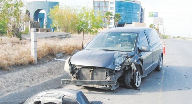 Choque con volcadura de un vehículo fue el que se registró por el Bulevar Colosio, a la altura de la entrada al Parque Finsa de la colonia Infonavit.