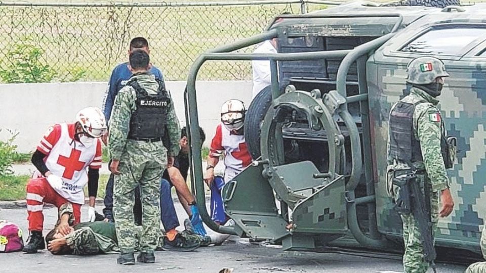 Del fuerte impacto, la unidad de la mujer trepó al camellón central, mientras que la militar pegó contra un muro de concreto en forma de cilindro y volcó quedando de costado. En las volteretas, dos de los militares que viajaban en la caja salieron “volando” y resultaron lesionados. Sólo uno de ellos resultó con lesiones consideradas graves y fue trasladado de urgencia al hospital, en el que quedó internado. Agentes de Tránsito acudieron al lugar y realizaron un exhaustivo peritaje para deslindar responsabilidades.
