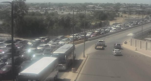 El Puente Juárez Lincoln de Nuevo Laredo, de igual manera se encuentra lleno, y a comparación con el día de ayer, no hay ninguna división en el centro del puente.
