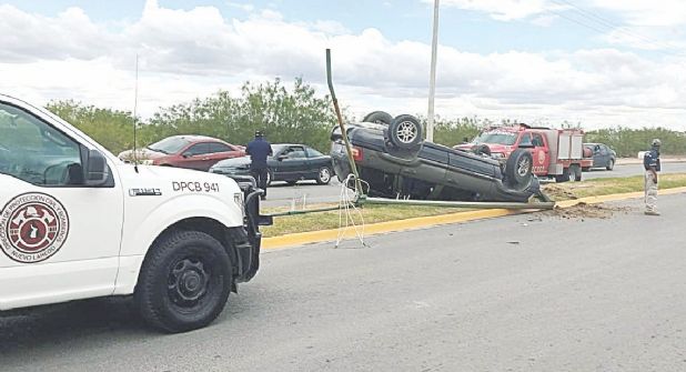 Luego de una falla mecánica mientras circulaba por el Bulevar Carlos Canseco, un hombre chocó contra un automóvil en movimiento, al seguir su camino en forma descontrolada pegó con un arbotante que derribó y al final, volcó quedando con las llantas hacia arriba.