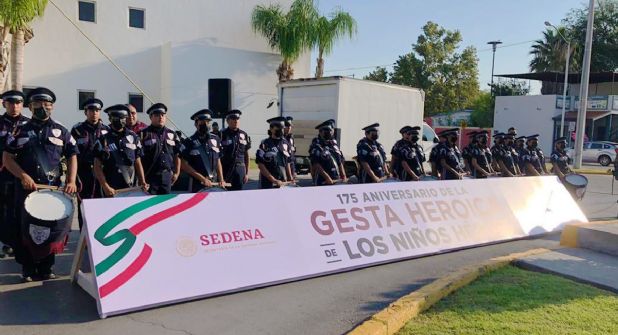 Autoridades municipales, militares, educativas y civiles conmemoraron esta mañana el 175 Aniversario de la gesta heroica del Castillo de Chapultepec, en el monumento a los Niños Héroes en Nuevo Laredo.