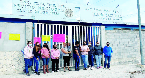 Madres de familia exigen el regreso a clases presenciales en la primaria Himno Nacional, que cerró sus instalaciones desde noviembre del año pasado, luego de que el plantel presentara daños en su infraestructura al registrarse un socavón, tanto al exterior como en el interior.