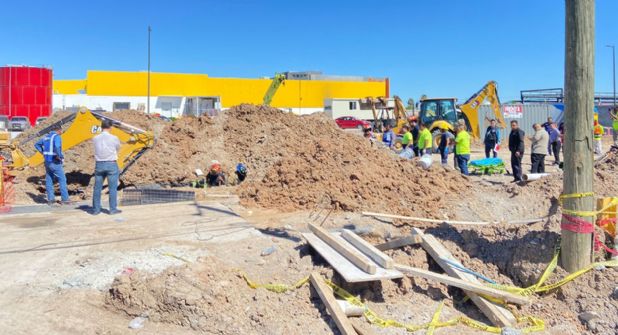 Dos trabajadores que realizaban una obra de conexión de tubería en las instalaciones de una nueva tienda comercial, resultaron heridos al quedar sepultados por un derrumbe de tierra en la construcción de un nuevo supermercado ubicado al sur de Nuevo Laredo.