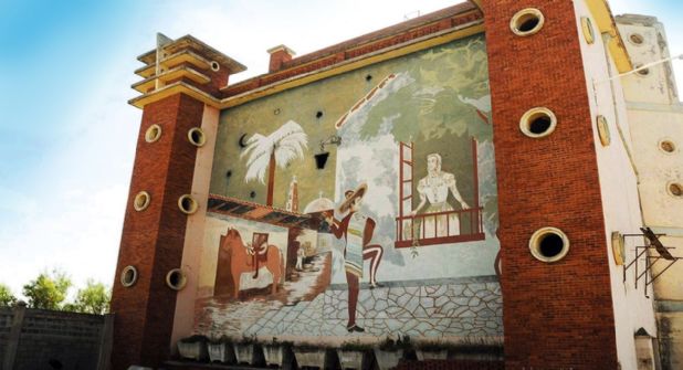 Con sus 12 metros de altura aún se aprecia a un hombre vestido de charro abajo de su caballo para cantarle una melodía de amor a su amada al borde de un balcón, una escena que constantemente se repetía en los grandes filmes de la época.