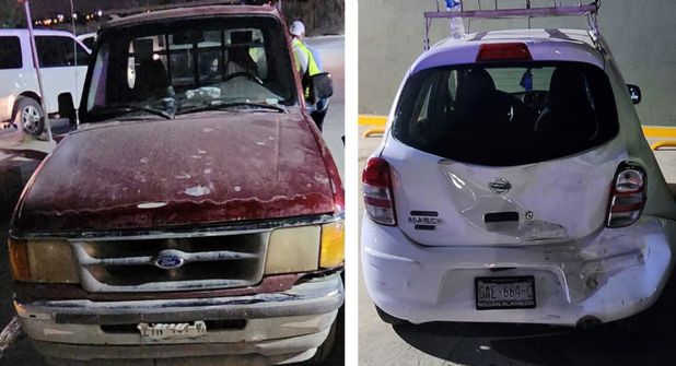 En la colisión se vieron involucrados un automóvil Nissan March modelo 2020 y una camioneta Ford Ranger 2007, de esta última, el conductor huyó.