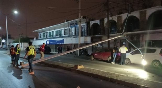 El poste quedó atravesado en medio de la transitada avenida, siendo acordonado por personal de Protección Civil que de inmediato llamó la atención del personal de alumbrado público para arreglar los desperfectos y evitar otros accidentes que lamentar.