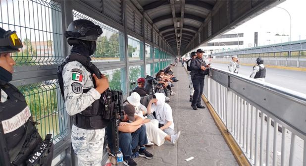 Por parte de las autoridades del lado mexicano, integrantes de corporaciones de seguridad de los tres niveles de gobierno siguieron con la vigilancia en la entrada del paso internacional.