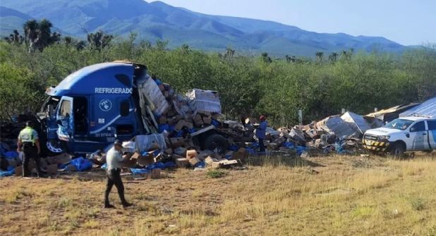 El chofer conducía por la Autopista a Nuevo Laredo cuando perdió el control del tráiler y éste se salió de la carretera; para su fortuna, fue a dar con la maleza, a un costado de la vía de sur a norte, hacia Nuevo Laredo.