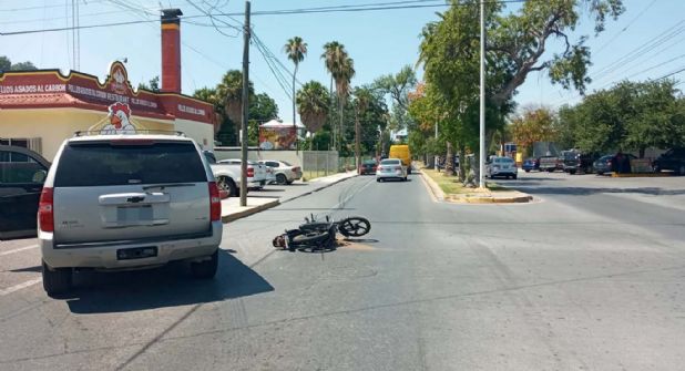 Un motociclista salió ileso pese a que chocó contra la camioneta de un hombre en la avenida Obregón de Nuevo Laredo, y todo por cambiar de un carril a otro sin ninguna precaución.