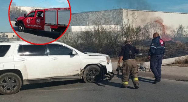Elementos del cuerpo de bomberos llegaron al lugar del accidente y de inmediato enfocaron sus baterías hacia el incendio que se registraba en los ternes baldíos frente al Palacio de Justicia y que se prendieron con la caída del enorme poste de concreto junto con su respectivo transformador.