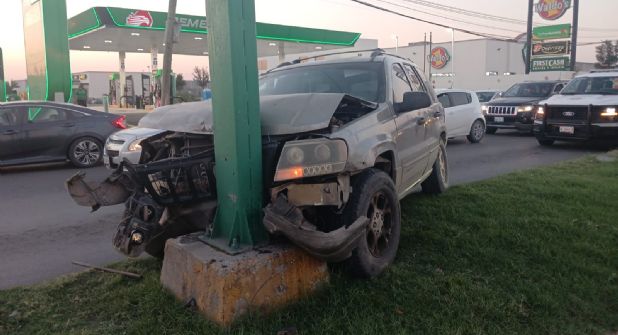 Esto provocó se descontrolará y fuera a impactarse de frente contar el poste del semáforo, quedando el Jeep muy dañado de su carrocería.