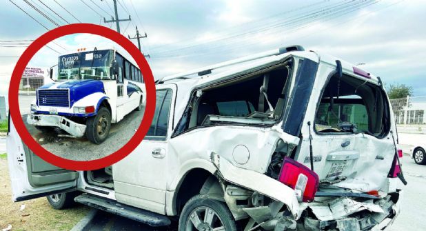 Agentes de Tránsito llegaron al lugar y determinaron que el chofer del urbano viajaba a exceso de velocidad, lo que desencadenó el choque por alcance.