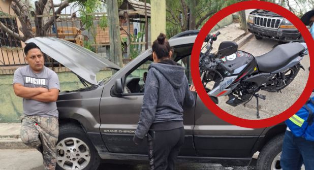El susto de su vida se llevó una joven pareja que iba en su moto Italika, cuando el conductor de un Jeep Cherokee se los llevó de encuentro. A pesar del aparatoso accidente, ninguno de los dos sufrió lesiones.