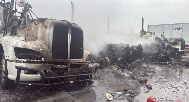 A su llegada, encontraron cuatro tráileres envueltos en llamas y otros tres dañados por el fuego.