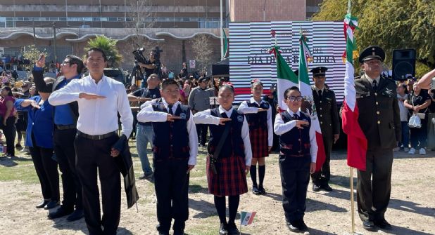 En el marco del aniversario del Día de la Bandera, un total de 18 escuelas de nivel preescolar, primaria, secundaria y preparatorias, tanto públicas como privadas participaron con sus escoltas en la ceremonia de honores al lábaro patrio y el izamiento de la bandera monumental ubicada en la Plaza Morelos para recibir el abanderamiento de parte de autoridades militares y municipales.
