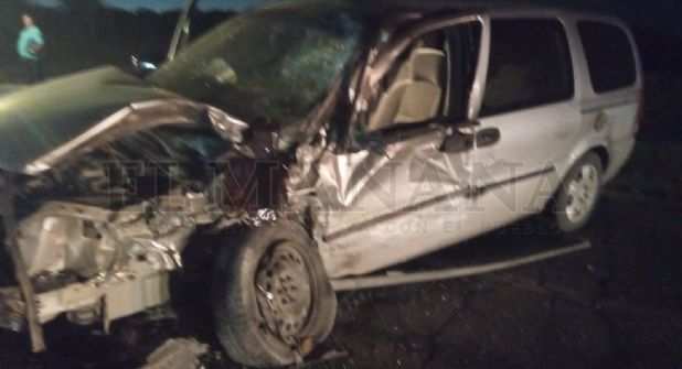 Dos personas lesionadas fue el saldo de un choque con volcadura de uno de los vehículos en hechos registrados el domingo en la noche sobre la Carretera Anáhuac a la altura del Fraccionamiento Los Ángeles.