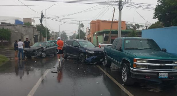 Tres vehículos se vieron involucrados en tremendo encontronazo ocurrido en calles de la colonia Guerrero, provocado por el conductor de un automóvil que no respetó la señal de alto.
