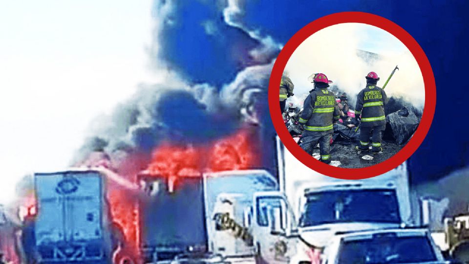 Al menos tres cajas de tráiler y una plataforma fueron consumidas en su totalidad, luego de que se incendiaron al interior de una línea de transportes ubicada en el libramiento Mex 2.