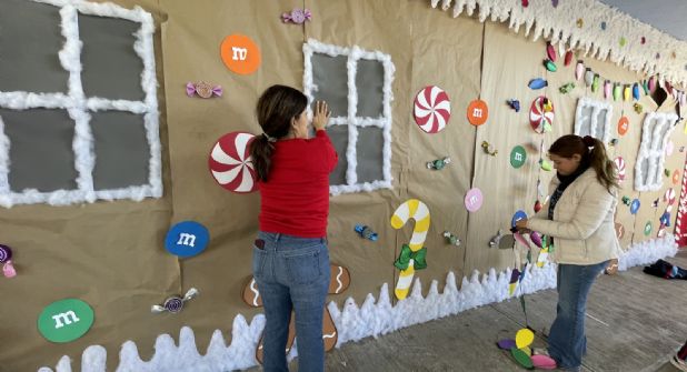 “Ya es tradición que la escuela se decore de casitas de jengibre y villas navideñas; esto lo hacemos en colectivo con los padres de familia; se les solicita apoyo en los grupos para que traigan algún elemento decorativo; después las madres de familia forman equipos y nos ayudan a colocar todo, pegarlo para que quede bonito, y los alumnos nos apoyan haciendo algunas actividades como figuras de galleta de jengibre que luego las pegamos afuera de cada salón”, explicó.