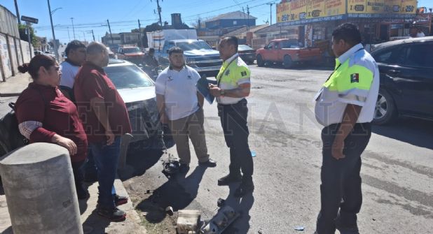 Un fuerte accidente automovilístico se registró este lunes alrededor de las 2:00 de la tarde en el crucero de Eva Sámano y Miquihuana, en la Colonia La Fe, de Nuevo Laredo.