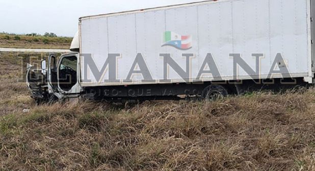 Se informó que el chofer iba de Nuevo Laredo a Monterrey, cuando debido a una distracción, terminó saliendo del camino, pero alcanzó a pegarle a una plataforma que iba enfrente.