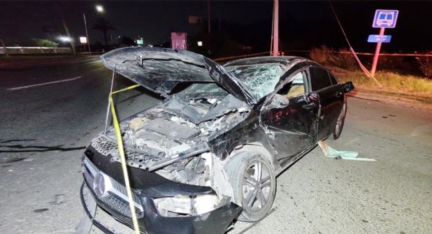 Se informó que la víctima, responsable del accidente, manejaba un automóvil Mercedes Benz A 220 modelo 2020 con placas de Estados Unidos.