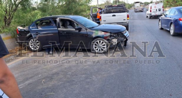 Tres trabajadores de una maquiladora salvaron la vida a pesar de que el carro en que viajaban se estrelló contra los muros de cemento de la Carretera Nacional Antigua.