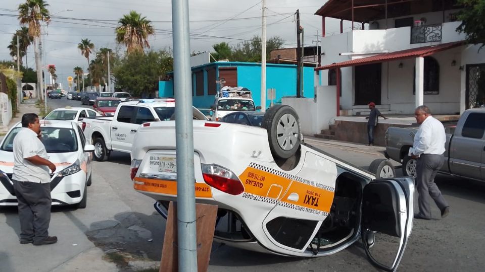 Un taxista y dos personas que viajaban con él resultaron lesionados, luego de que volcaron tras ser chocados por un automovilista que no respetó la señal de alto, en calles del sector poniente de Nuevo Laredo.