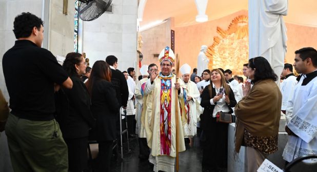 Previo a la ceremonia, el obispo sostuvo un encuentro con medios de comunicación, donde señaló que nunca antes había estado en Nuevo Laredo.
