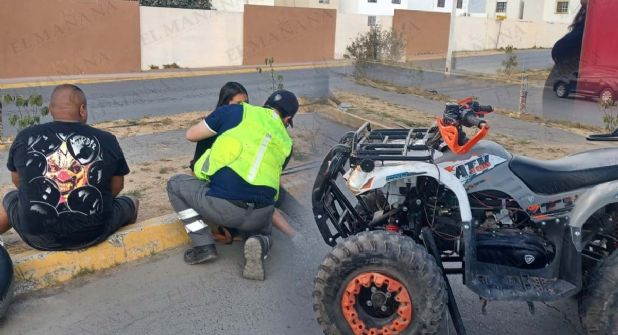 Nuevo accidente de cuatrimoto se registró el jueves por la tarde en las calles de la colonia Bosques del Sur, al sur de Nuevo Laredo, y en este caso, un padre y su hija derraparon accidentalmente y, de acuerdo al reporte de los paramédicos, no sufrieron lesiones graves y solo leves golpes y fueron atendidos en el lugar.