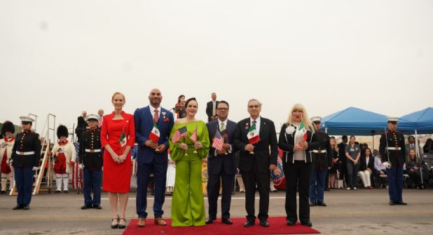 Durante el evento, niñas y niños embajadores de México y Estados Unidos protagonizaron el tradicional abrazo, portando trajes típicos que representan la riqueza cultural de ambas naciones, en un gesto que simboliza el futuro compartido de esta región.