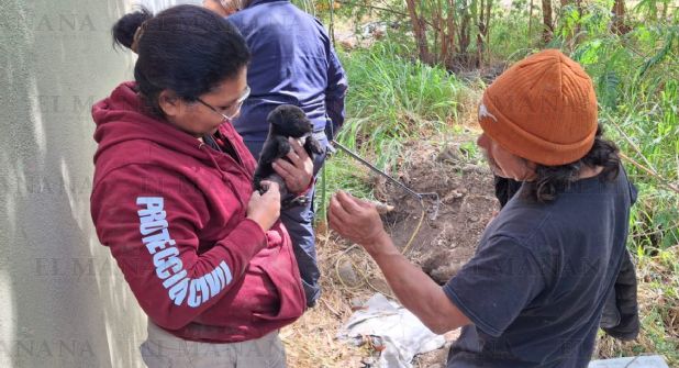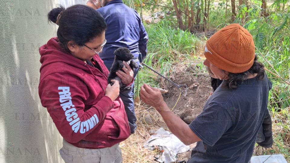El buen samaritano condujo a los elementos de Protección Civil hasta el pozo en donde se encontraba enterrado el cachorrito y de inmediato empezaron a trabajar en su rescate.