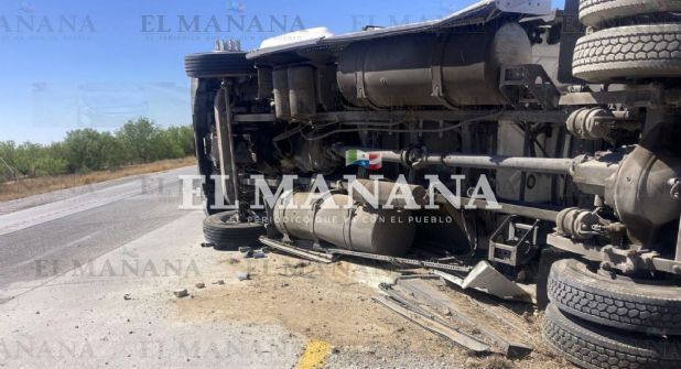 El operador de un tractocamión presuntamente se durmió al volante, lo que provocó que la pesada unidad que conducía terminara volcada sobre su costado derecho, en hechos ocurridos este sábado en la autopista Monterrey-Nuevo Laredo.